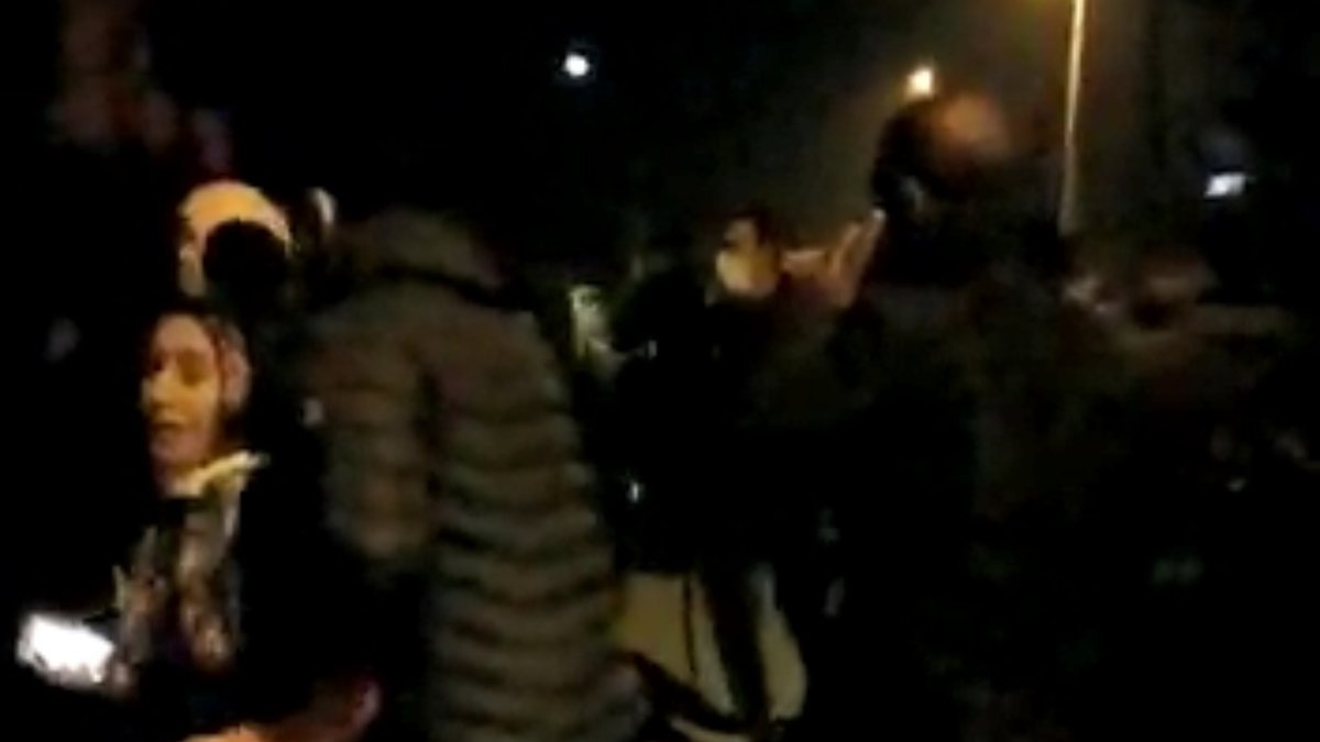 Polis ekipleri direnen grubu dağıtmak için havaya uyarı ateşi açarken, yaşanan arbedede 2 polis yaralandı.