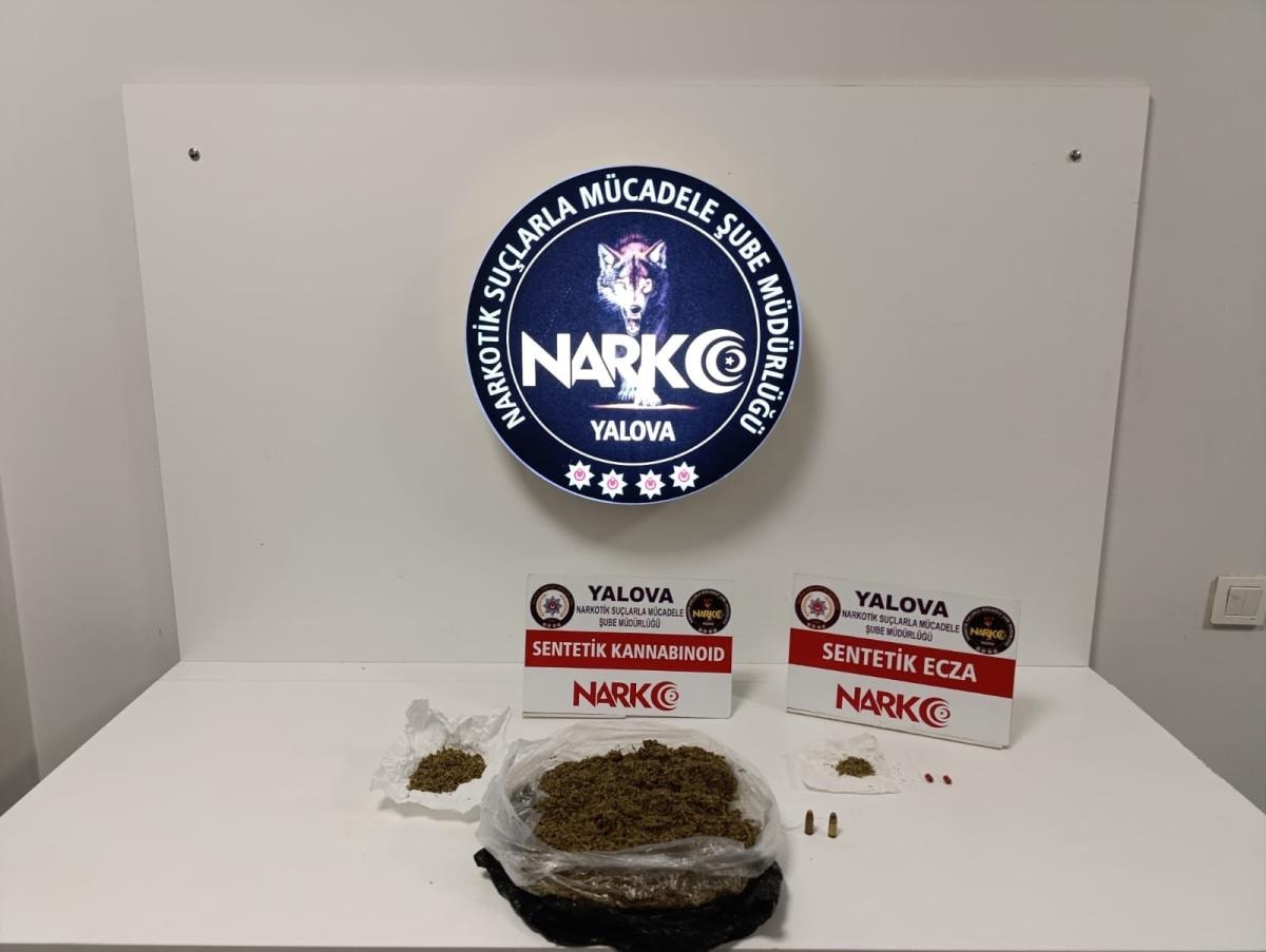 Yapılan aramalarda 2 kilo 875 gram sentetik kannabinoid, 6 gram metamfetamin, 2 sentetik hap, 2 hassas terazi, kurusıkı tabanca, tabancaya ait 14 mermi, 2 adet 9 mm çapında tabanca mermisi ele geçirildi.