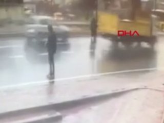 Karşıya geçmeye çalışan kadına otomobil çarptı ViDEO