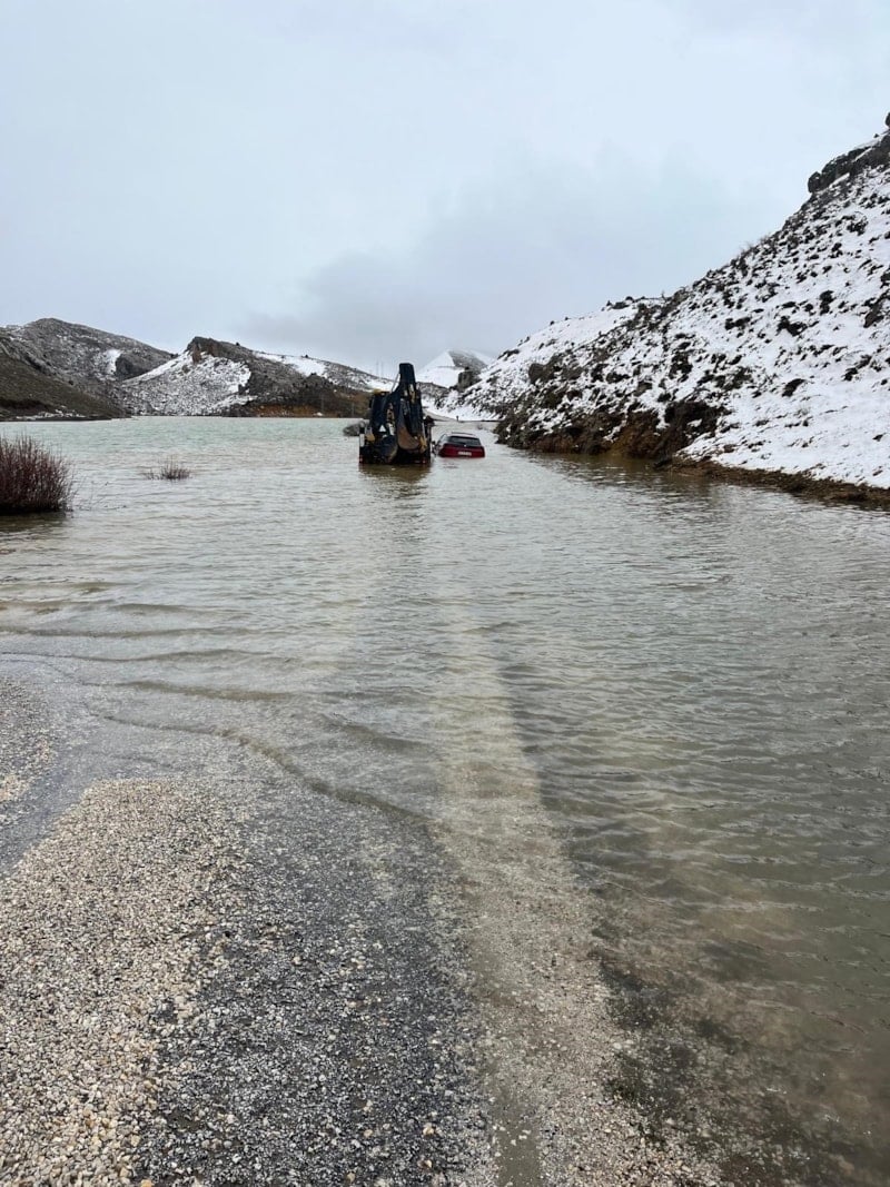 Yayladan dönüş yapmak isteyen 4 kişilik ailenin bulunduğu SUV tipi araç, suyla kaplanan yoldan geçmeye çalışırken ilerleyemedi. Artan su seviyesi nedeniyle araç mahsur kalırken, aile de araç içinde yardım beklemek zorunda kaldı.