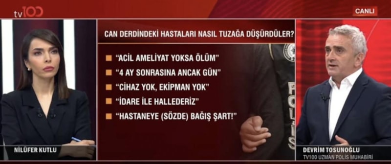 İstanbul merkezli 3 ilde hastalardan "bıçak parası" talep ederek haksız kazanç elde ettiği öne sürülen şüpheliler yakalandı. Detayları tv100 uzman polis muhabiri Devrim Tosunoğlu anlattı.