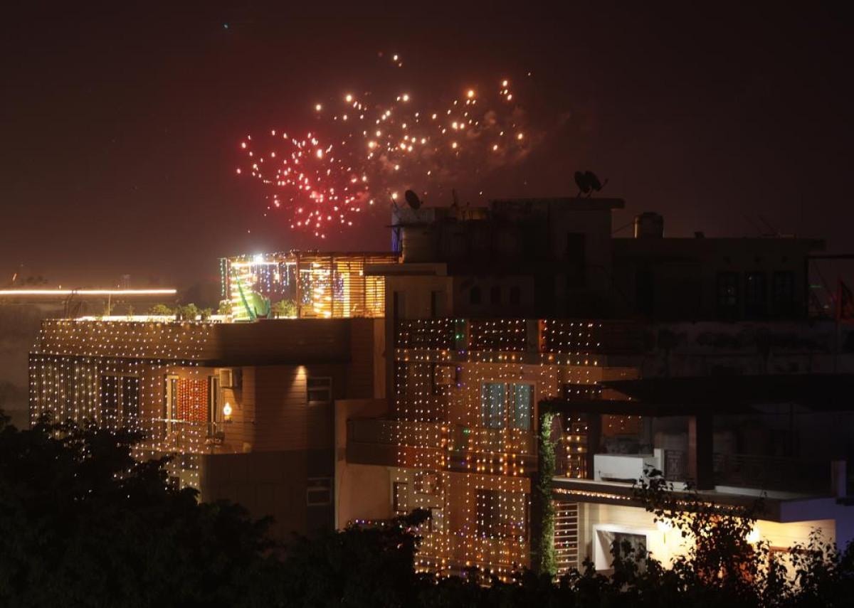 Hindistan'ın başkenti Yeni Delhi'de yasağa rağmen Diwali ışık festivalinde kullanılan havai fişekler, hava kirliliğinin artmasına yol açtı.