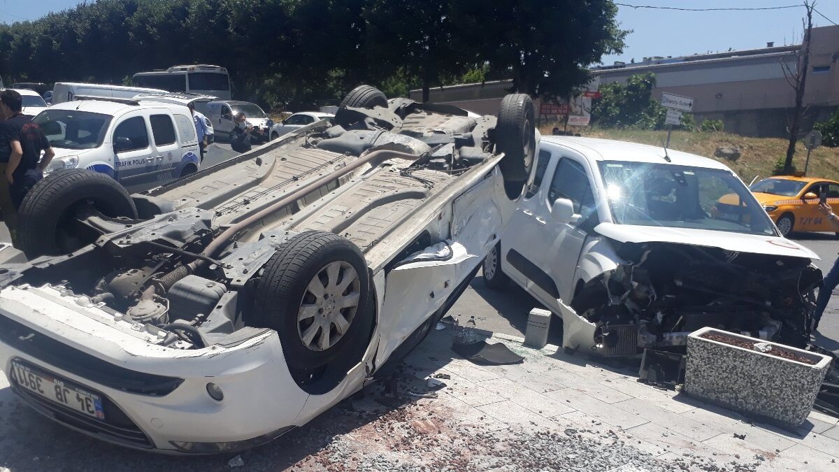 Yokuş aşağı inerken caddeye çıkmak isteyen Gökmen idaresindeki araç, çarpmanın etkisi ile takla attı.
