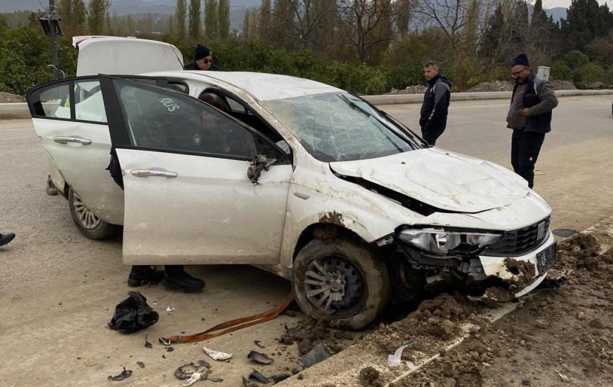 Balıkesir'in Edremit ilçesinde M.S. yönetimindeki otomobil, Akçay istikametinden Edremit'e seyir halindeyken Ülkü Yolu mevkiinde direksiyon hakimiyetinin kaybedilmesiyle refüje çarparak takla attı.