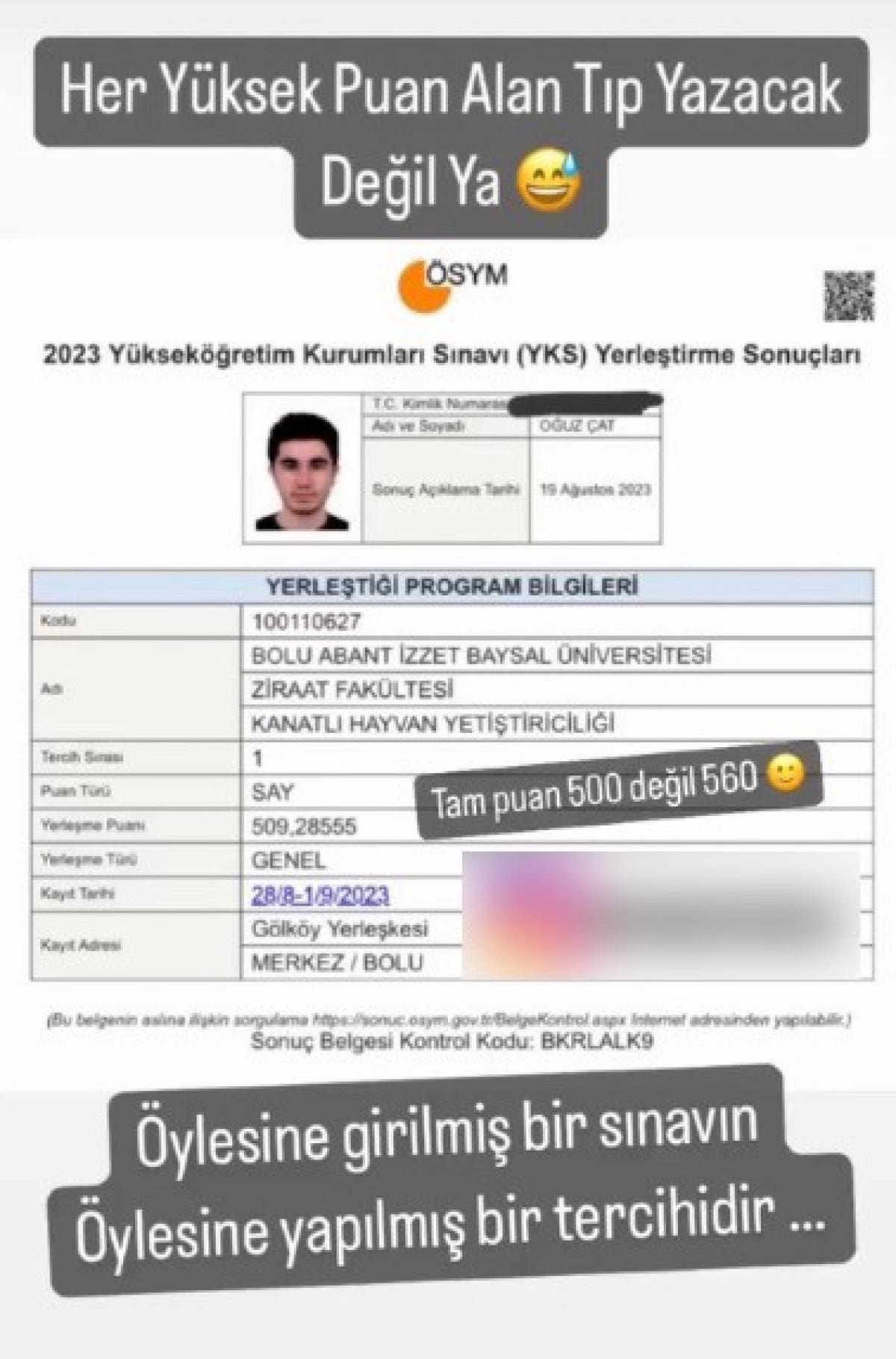 Çat, tercih ettiği Bolu Abant İzzet Baysal Üniversitesi’nde ‘kanatlı hayvan yetiştiriciliği’ bölümünü kazanmasıyla sosyal medyanın gündemine oturdu.