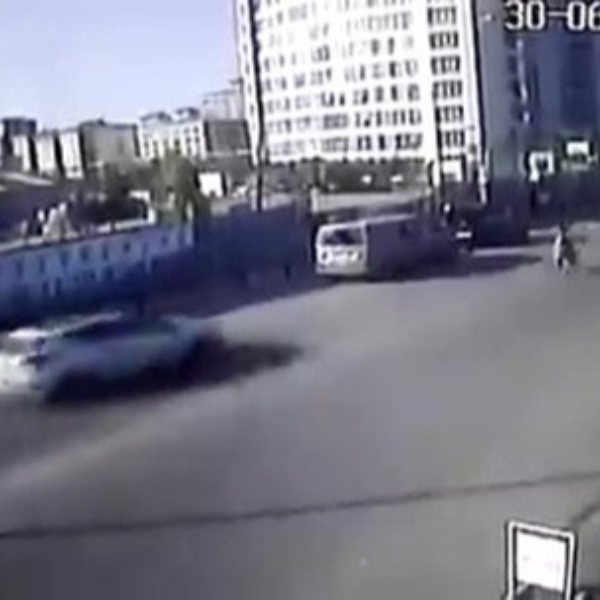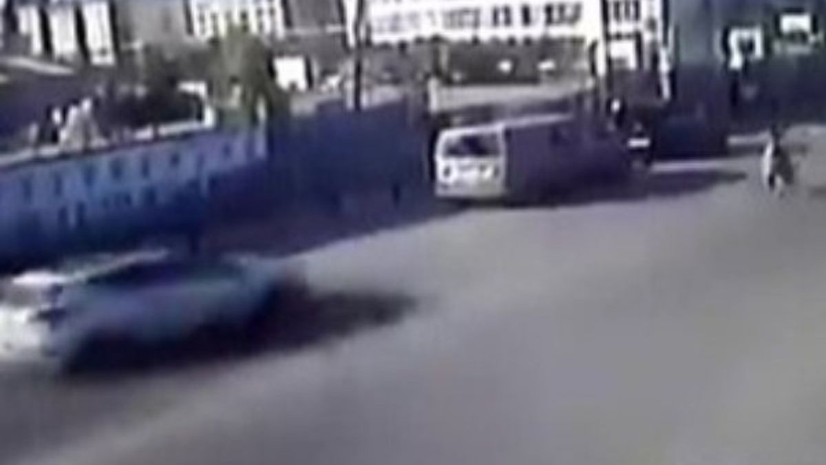 Güvenlik kamerasına yansıyan görüntülerde, yaya yolun karşısına geçmeye çalışıyor, otomobilin geldiğini fark eden yaya hızlanıyor, frene basmaya çalışan otomobil yayaya çarpıyor, yaya metrelerce havaya uçuyor.