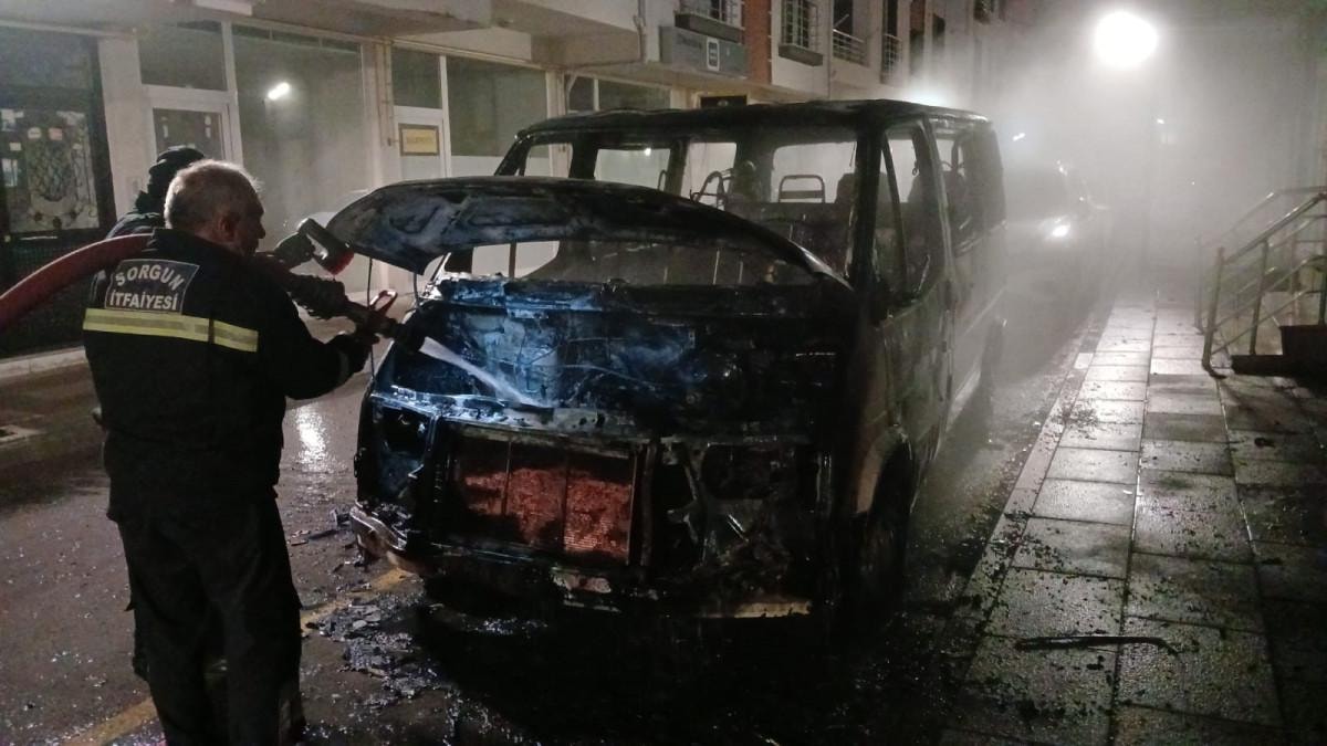 Yozgat’ın Sorgun ilçesinde yaşayn Metin Öcal’ın minibüsü park halindeyken kendiliğinden alev aldı.
