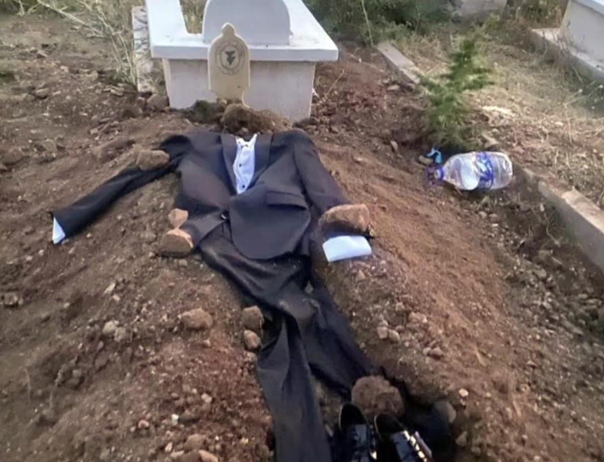 Evlilik hazırlıkları yaptığı öğrenilen Dolgun'un kabrinin üzerine damatlık takım elbisesi konuldu.