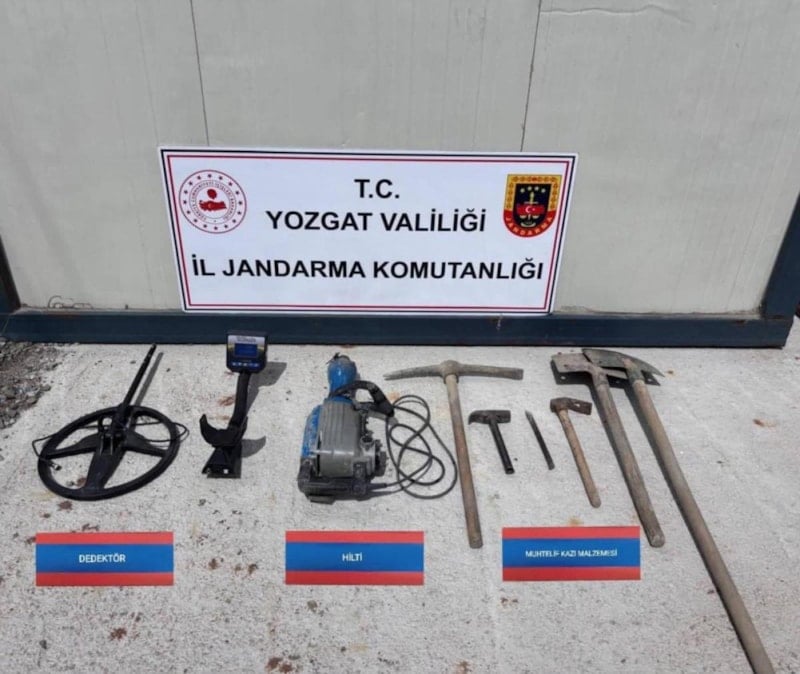 Yasa dışı kazıda kullanılan ekipmanlara da el konuldu. Ele geçirilenler arasında 1 hilti, 1 dedektör, 4 kazma, 2 kürek, 1 keser, 1 çekiç ve 1 murç yer aldı.
