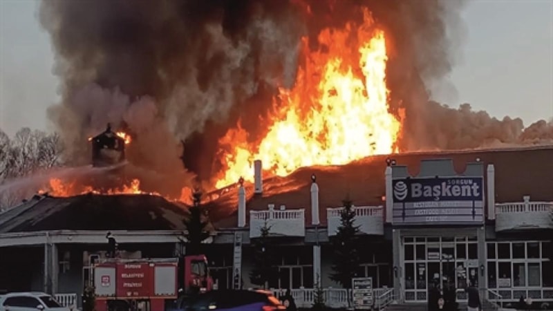 Sorgun ilçesinde dinlenme tesisinde çıkan yangın, itfaiye ekiplerince 2 saatte söndürülürken, tesis kullanılamaz hale geldi.