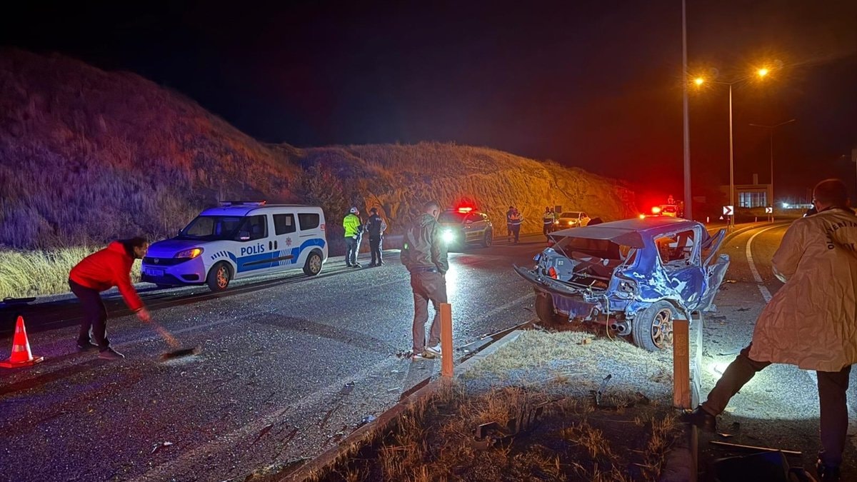 - Yozgat'ta bir otomobil, aydınlatma direğine çarparak ikiye bölündü.