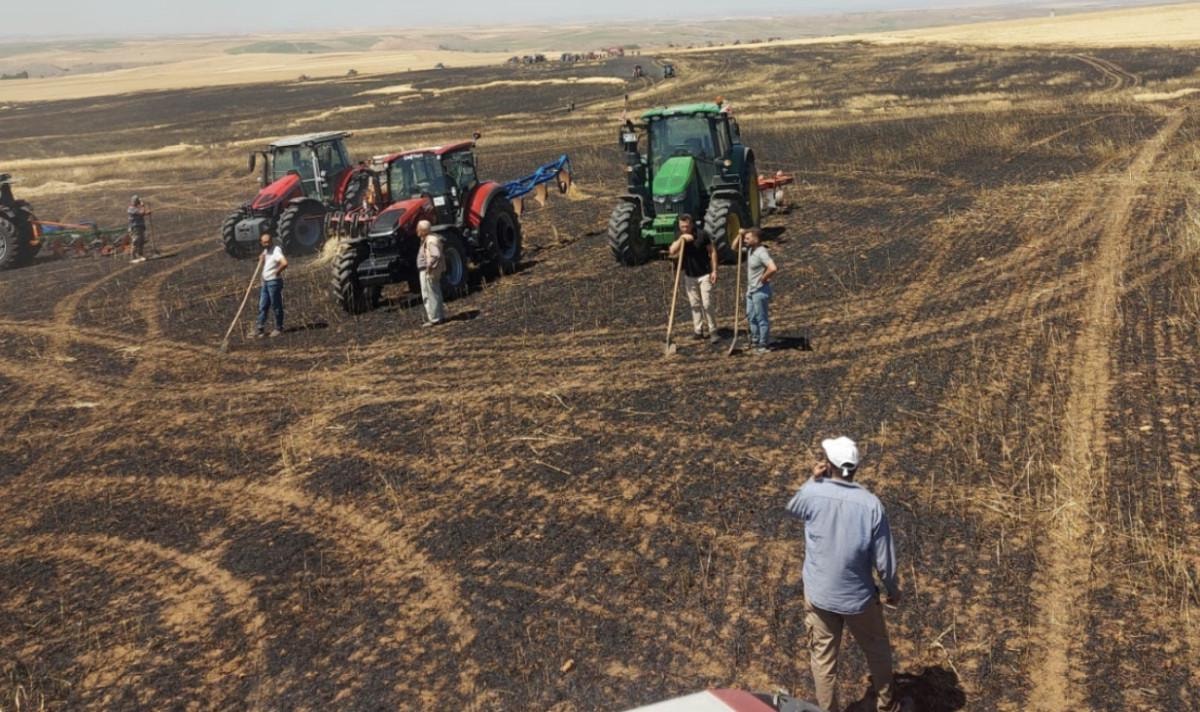 Yaklaşık 100 dönüm alan yanarken ekin de ziyan oldu.
