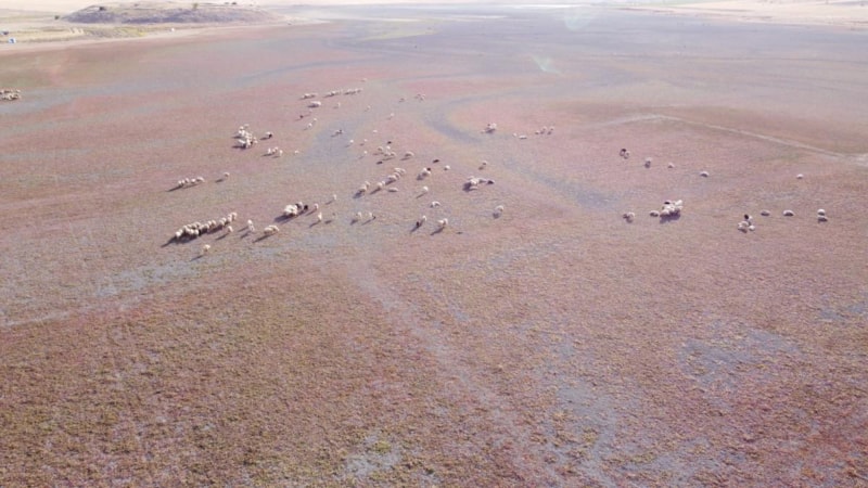 Kuraklığın şiddetini gözler önüne seren görüntülerde, baraj havzasındaki çatlamış toprak ve hayvanların yayıldığı alan dikkat çekti.