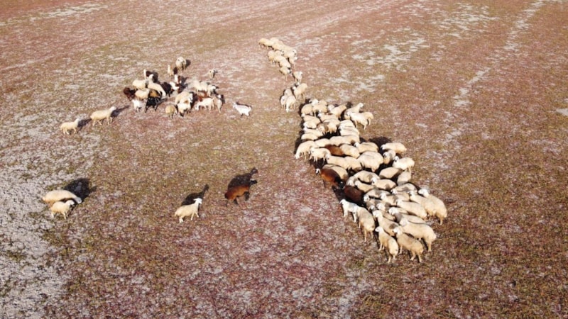 Drone kamerasıyla kaydedilen görüntülerde, Esenli köyünde yer alan Gelingüllü Barajı’nın büyük oranda kuruduğu ve ortaya çıkan geniş alanlarda koyun sürülerinin otlatıldığı görüldü.