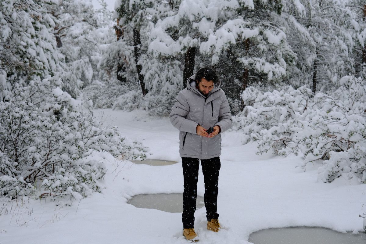 İlçede bulunan ormanlık alan, kar yağışı ile birlikte kartpostallık görüntülere sahne oldu.