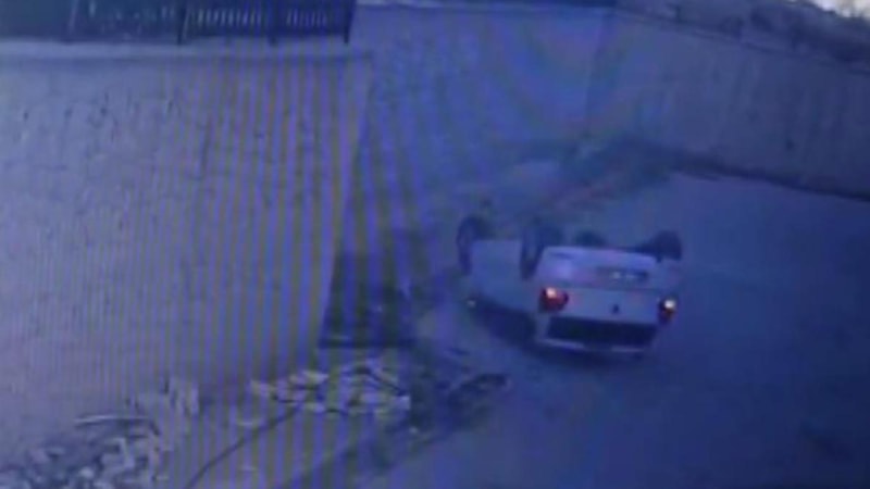 Yozgat'ta kontrolden çıkan otomobilin metrelerce yükseklikten okul bahçesine çakıldığı anlar güvenlik kamerasına yansıdı. Kazada otomobilin sürücüsü yaralandı.
