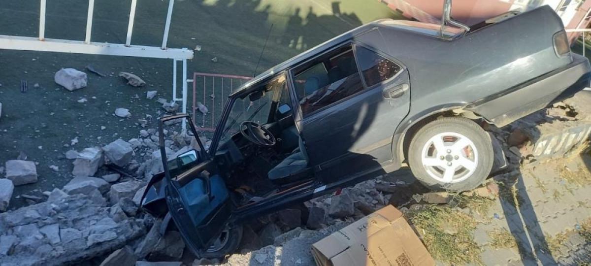 Yozgat'ın Sorgun ilçesi Çekerek Caddesi'nde İ.Y. idaresindeki otomobil, Ertuğrul Gazi İlkokulu'nun bahçe duvarına hızla çarparak aşağıya uçtu.