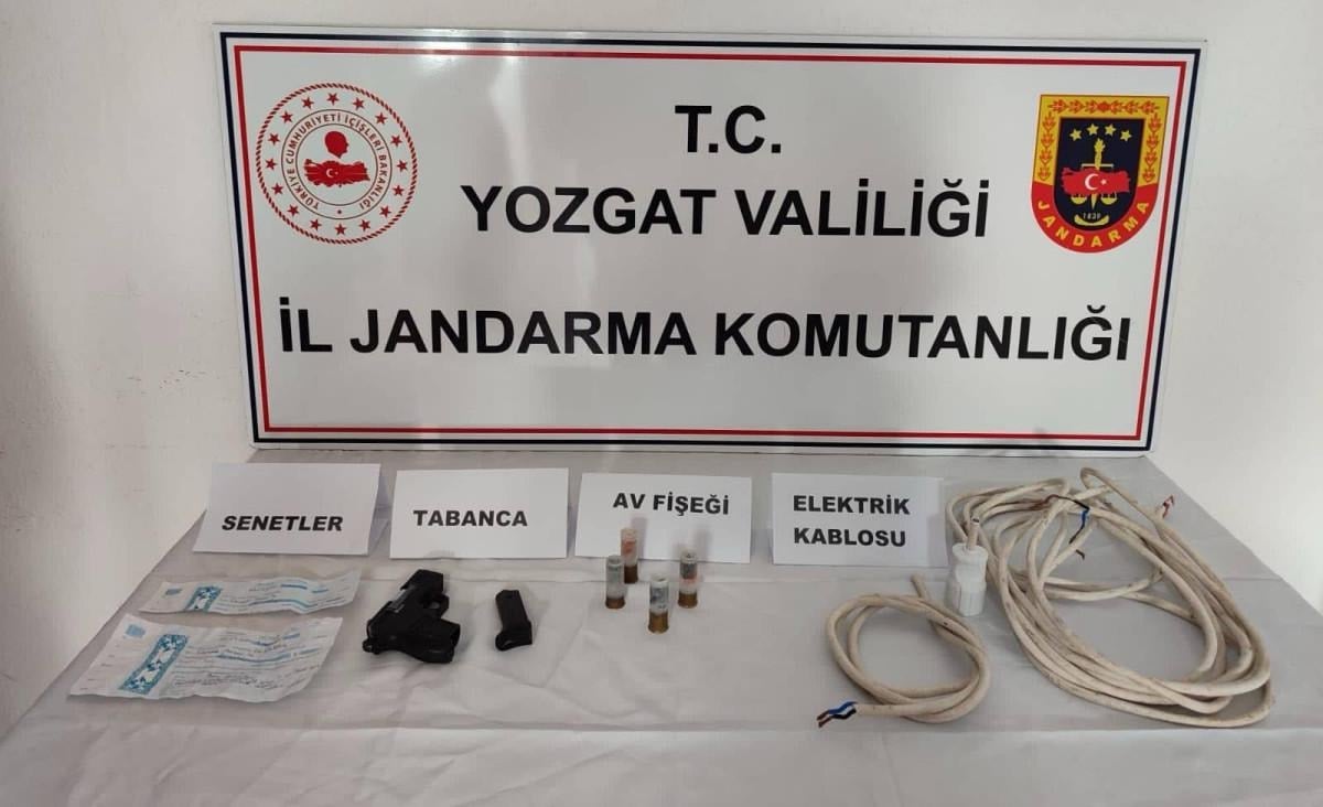 Şüphelilerin üst aramasında, 1 milyon liralık senet ile tabanca ve 4 av tüfeği fişeği ele geçirildi.