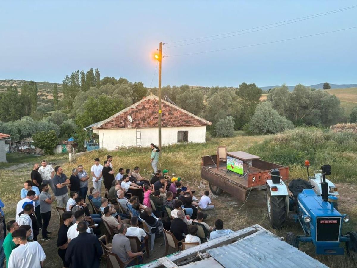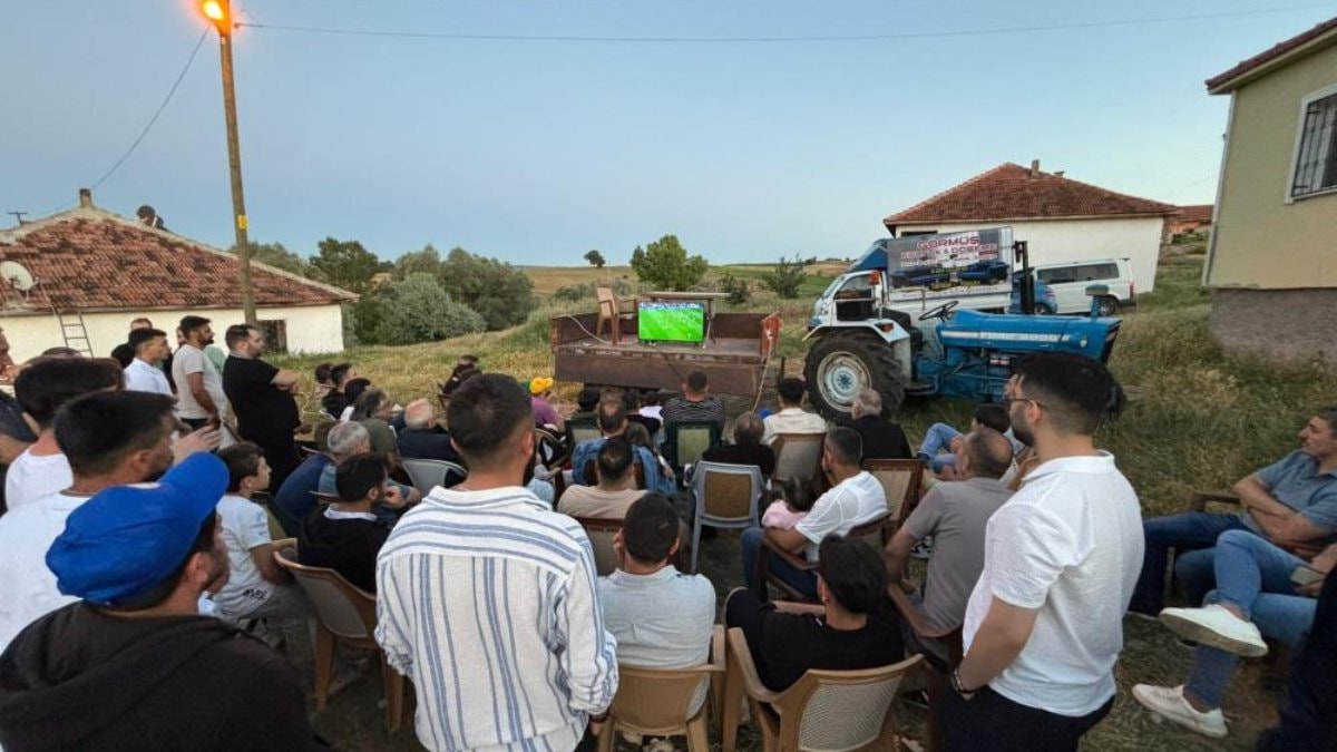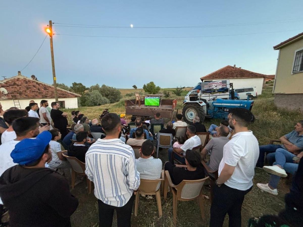 A Milli Takımın 2024 Avrupa Futbol Şampiyonası’nda final oynamasını istediklerini söyleyen köy halkından Tufan Görmüş, “Bugün traktör üzerine kurduğumuz televizyonla maçı hep birlikte izledik, milli takıma destek olduk” dedi.