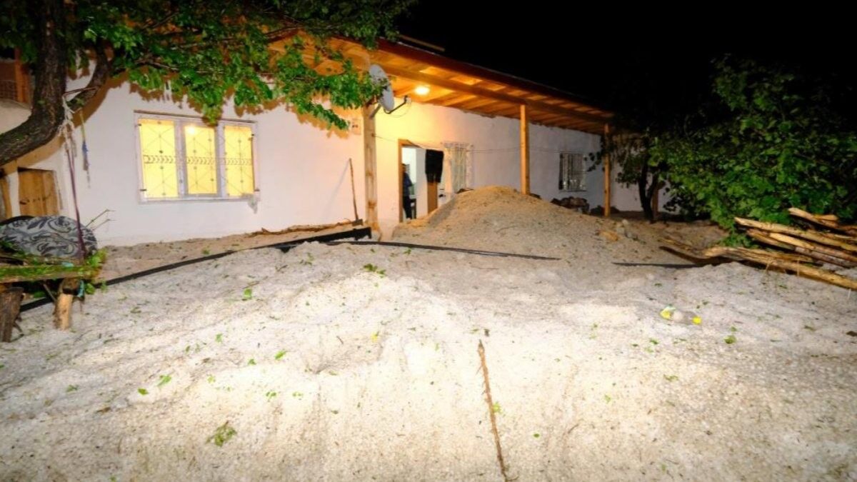 Yer yer 50 santimetreye kadar ulaşan dolu birikintisi nedeniyle bazı evlerin önü kapanırken, araçlar da dolu altında kaldı.