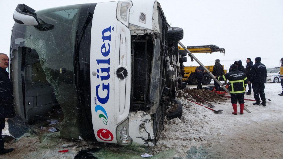 Kazada 1 kişi öldü, 34 kişi yaralandı. Araçta sıkışan yedek şoför, AFAD ekibinin çalışmasıyla çıkarıldı.