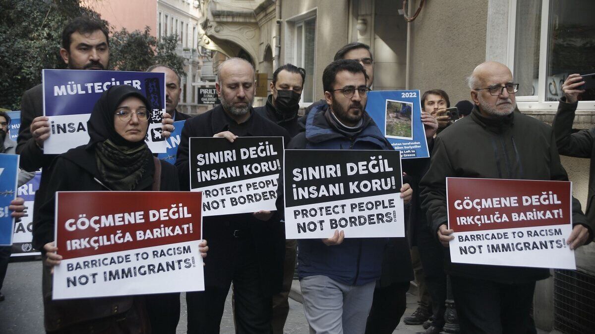 Çok sayıda sivil toplum kuruluşu üyeleri, mülteci ölümlerini protesto etmek amacıyla saat 14.00'te Beyoğlu'ndaki Yunanistan İstanbul Başkonsolosluğu'nun bulunduğu sokakta bir araya geldi.