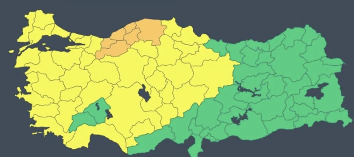 Meteoroloji Genel Müdürlüğü yurt geneline uyarıda bulundu ve özellikle 44 il için "sarı kodlu" uyarı geçti.