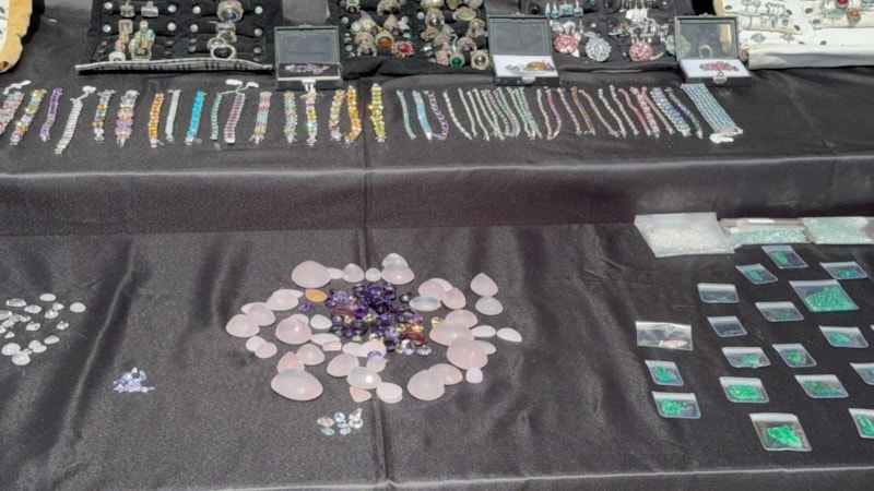 Evde yapılan aramalarda ise piyasa değeri yaklaşık 250 milyon lirayı bulan 151 kilo 361 gram pırlanta, zümrüt, yakut, kuvars, sedef, ametist gibi değerli taşlarla 940 adet değerli taş ile işlenen kolye, yüzük ve küpe ele geçirildi.