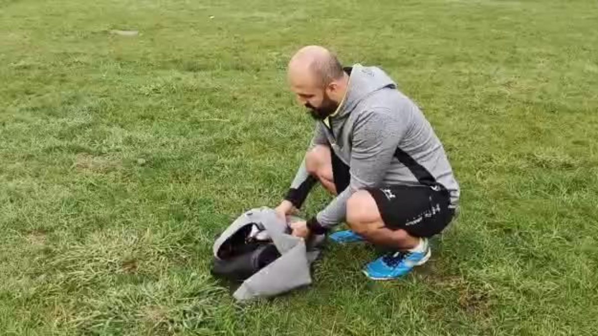 İstanbul Zeytinburnu Sahili'nde koşu yapan iki kişi, yeşillik alanda ayaklarına olta ipi dolanan bir martının uçamadığını fark etti.
