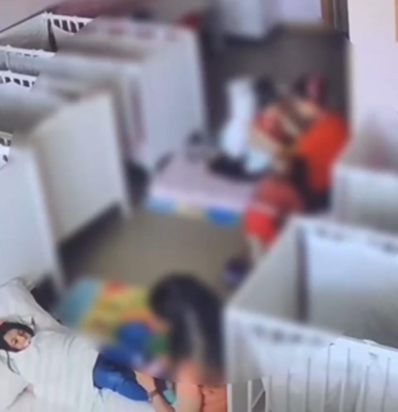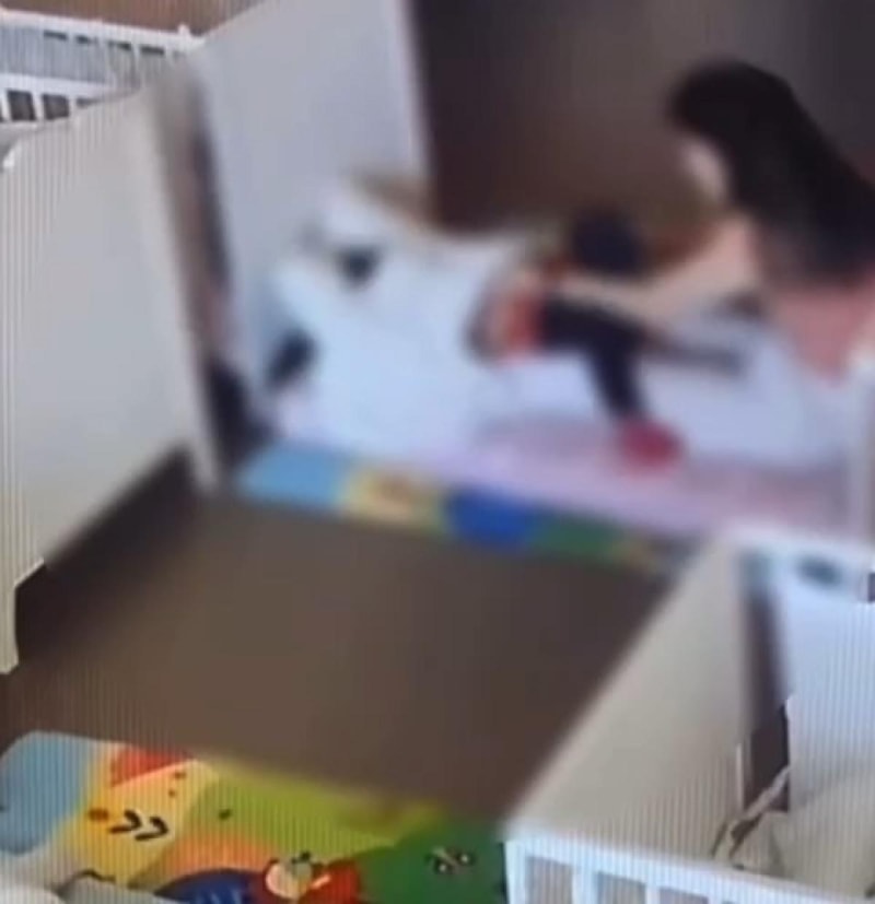 Görüntülerin devamında ise çocuğu hızlıca sağa sola salladıkları elini ve ayaklarını tuttukları, her iki kadınında çocuğa kızdıkları, çocuğun ayaklarını oynatmasına izin vermedikleri aktarıldı.