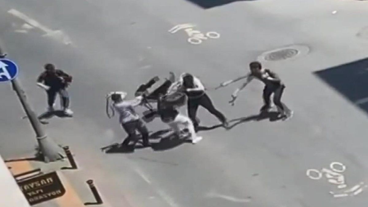Taraflar birbirlerine yumruk, tekme ve kemerlerle saldırdı. Kavga, olaya karışan kişilerin kaçmasıyla sona erdi. Yaşanan o anlar ise çevredeki bir vatandaşın cep telefonu kamerasına yansıdı.