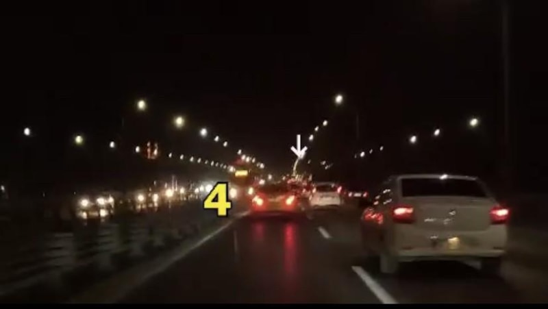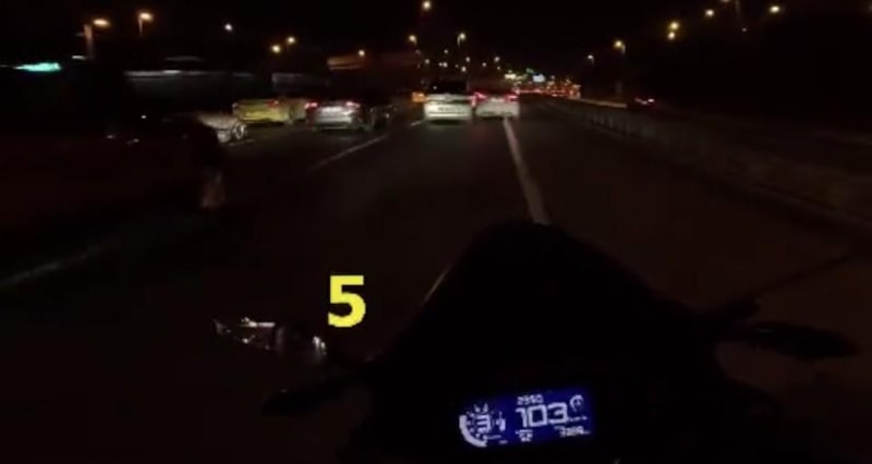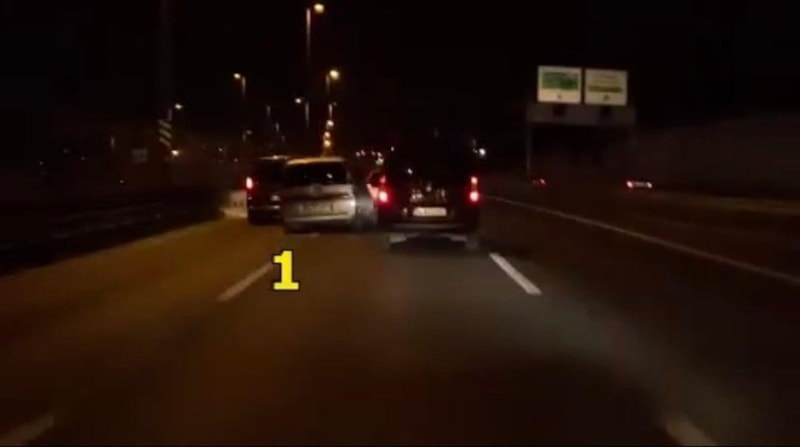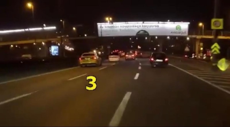 Adeta terör estiren sürücünün o anları, kendisini takip eden bir motosikletlinin kask kamerasına yansıdı.
