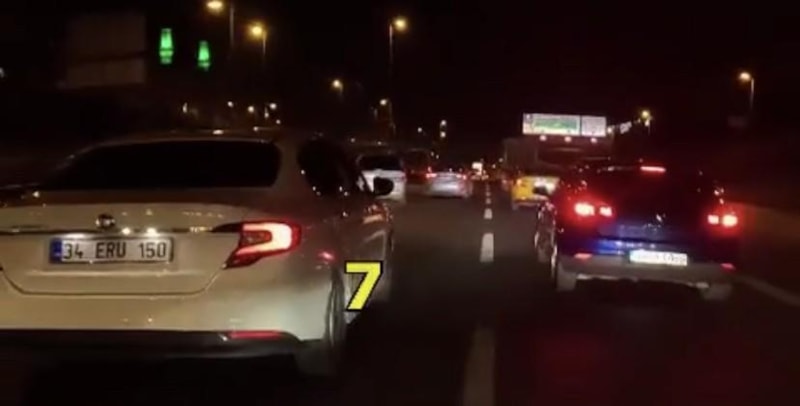 Şahsa, sivil trafik polisi tarafından “Aksine bir işaret bulunmadıkça şerit ihlali yapmak, makas atmak” maddesinden 4 bin 64 lira, “Kara yollarında kamunun rahat ve huzurunu bozacak veya kişilere zarar verecek şekilde araç kullanmak” maddesinden 436 lira, “Yakın takip” maddesinden 436 lira, “Sürücü belgesini yanında bulundurmamak” maddesinden 951 lira ve “Görüşü engelleyecek cam filmi kullanmak” maddesinden 951 lira olmak üzere toplamda 6 bin 838 lira idari para cezası kesildi.