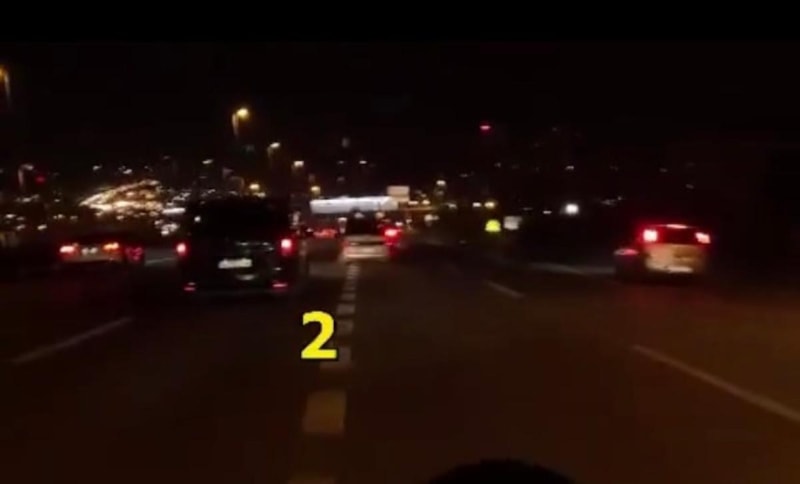 İstanbul'un Zeytinburnu ilçesinde E-5 kara yolunda seyir halindeki sürücü, araçların arasından defalarca makas atarak ilerledi.