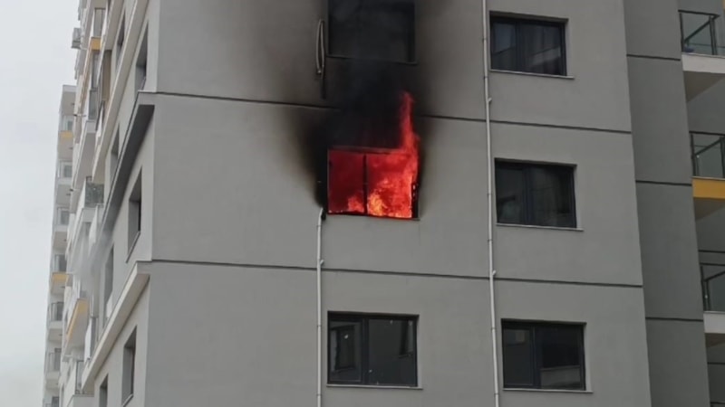 İzmir'in Menemen ilçesi Asarlık Mahallesi'ndeki 8 katlı sitenin 2. katındaki bir dairede yangın meydana geldi.