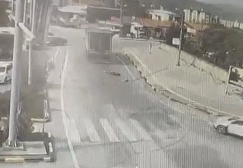 Öte yandan kaza anı bölgede bulunan güvenlik kamerasına saniye saniye yansıdı.