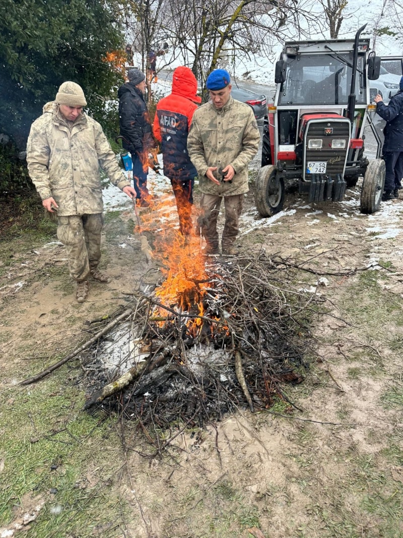 Çalışmalara jandarma, AFAD, polis, UMKE, sağlık ekipleri, gönüllüler ile Alaplı Belediyesi itfaiye ekipleri de katıldı.
