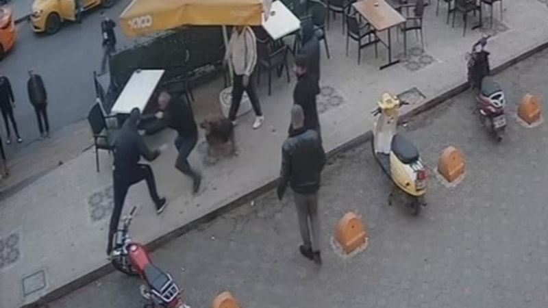 Görüntülerde Serkan Ö.'nün bir anda Zafer İ.'ye bıçakla saldırması ve ikili arasındaki boğuşma ve yaralanan Zafer İ.'nin düşme anları yer aldı.