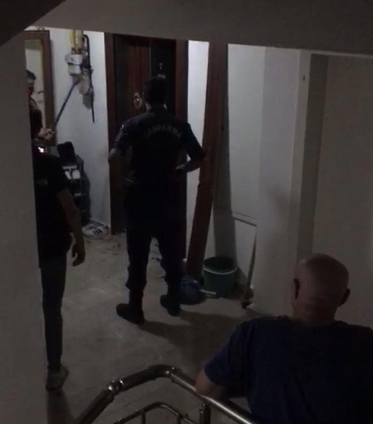 Gürültüye uyanan komşular durumu ekiplere haber verdi. İhbar üzerine olay yerine gelen jandarma ekipleri, evin kapısını balyozla kırarak içeriye girdi.