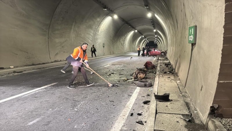 Zonguldak'ta tünel içinde duvara çarpan otomobildeki 2 kişi ağır yaralandı. Otomobilin motoru çarpmanın etkisiyle metrelerce savrulurken hız kadranı ise 200'de takılı kaldı.