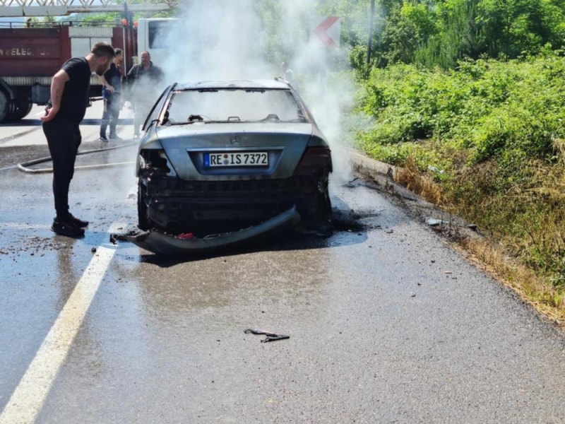 Ankara-Zonguldak karayolu Karaman mevkiinde meydana gelen olayda, gurbetçi Ş.İ. hakimiyetindeki RE İS 7372 plakalı Mercedes marka araç, kısa sürede henüz nedeni bilinmeyen şekilde alev aldı.