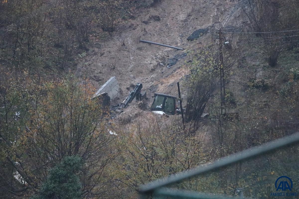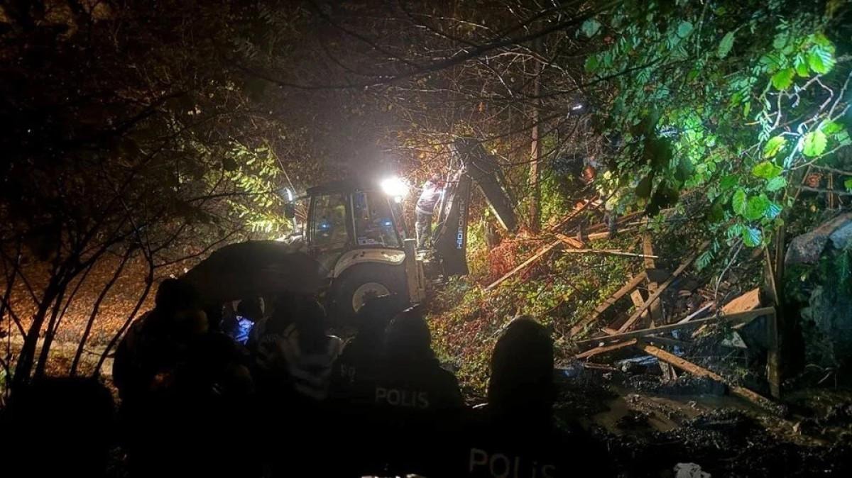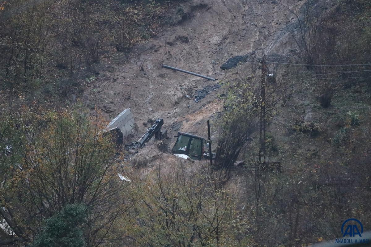 Sabah saatlerinde heyelan yaşanan bölgede enkaz altında kalan anne ve oğlunun bulunması için arama çalışmalarına yeniden başlandı.