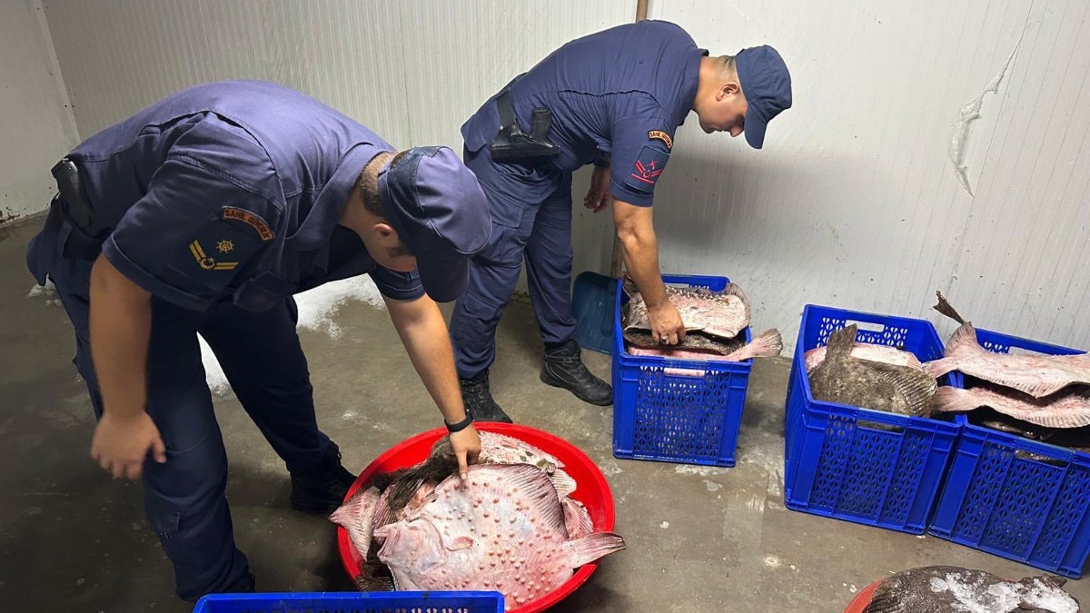 Zonguldak Kilimli Limanı'nda Sahil Güvenlik Çaycuma Deniz Güvenlik Tim Komutanlığı ekipleri, yaptıkları kontrolde kaçak kalkan avlandığını tespit etti.