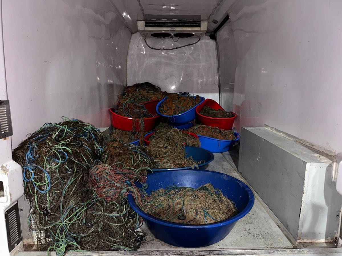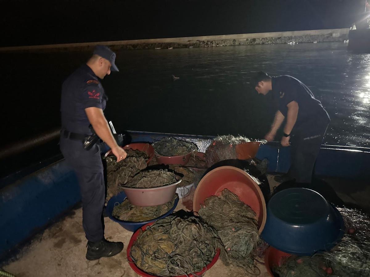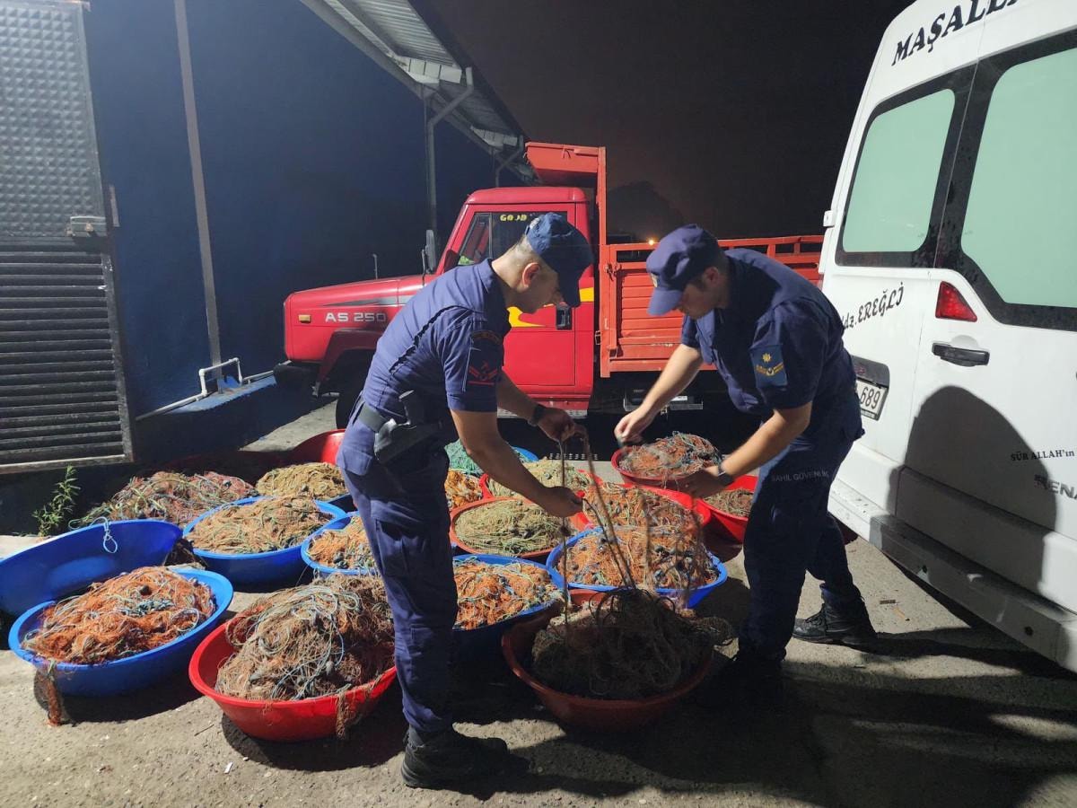 Yasa dışı avcılıkta kullanıldığı öne sürülen 14 bin metre kalkan ağına da el konuldu.