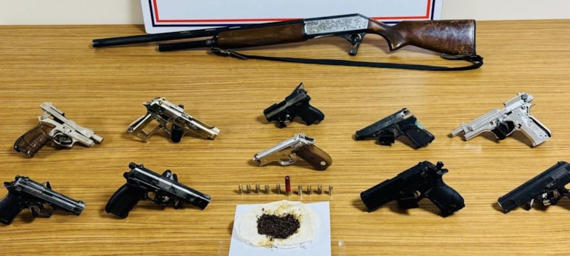 Operasyonda 10 adet ruhsatsız tabanca, 1 adet 36 kalibre fişek, 9 adet 9 mm fişek, 1 adet av tüfeği, 5 adet şarjör ile bir miktar uyuşturucu madde ele geçirildi.
