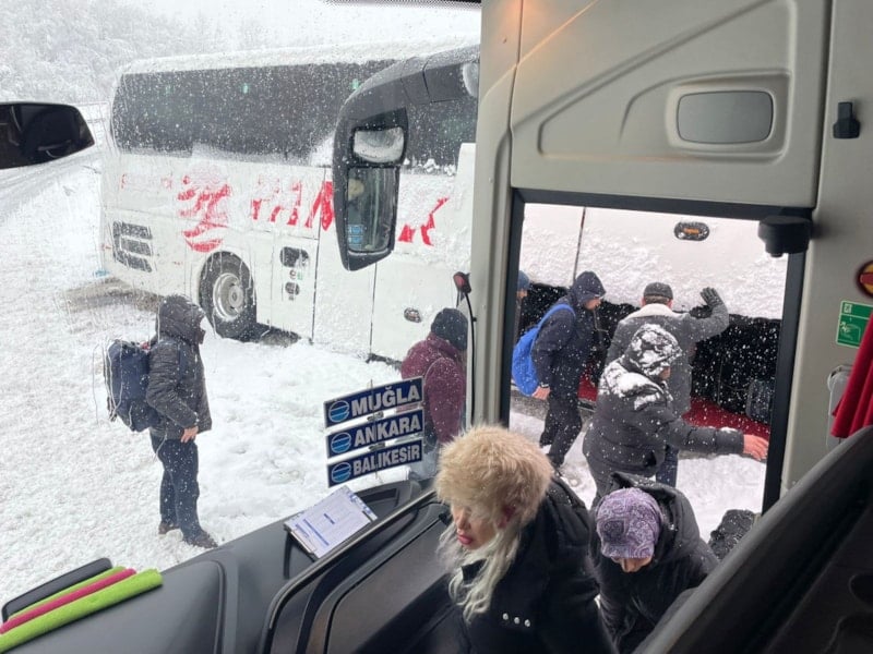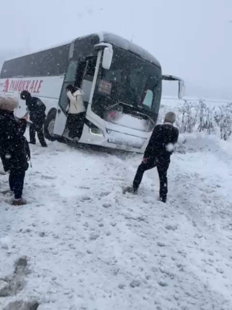Yoğun kar nedeniyle zaman zaman trafik durma noktasına gelirken, 67 ADA 081 plakalı yolcu otobüsü kaygan zemin sebebiyle kontrolden çıktı. Otobüsün kaydığı anlar, manzara çekmek isteyen bir yolcu tarafından cep telefonu kamerasıyla kaydedildi.