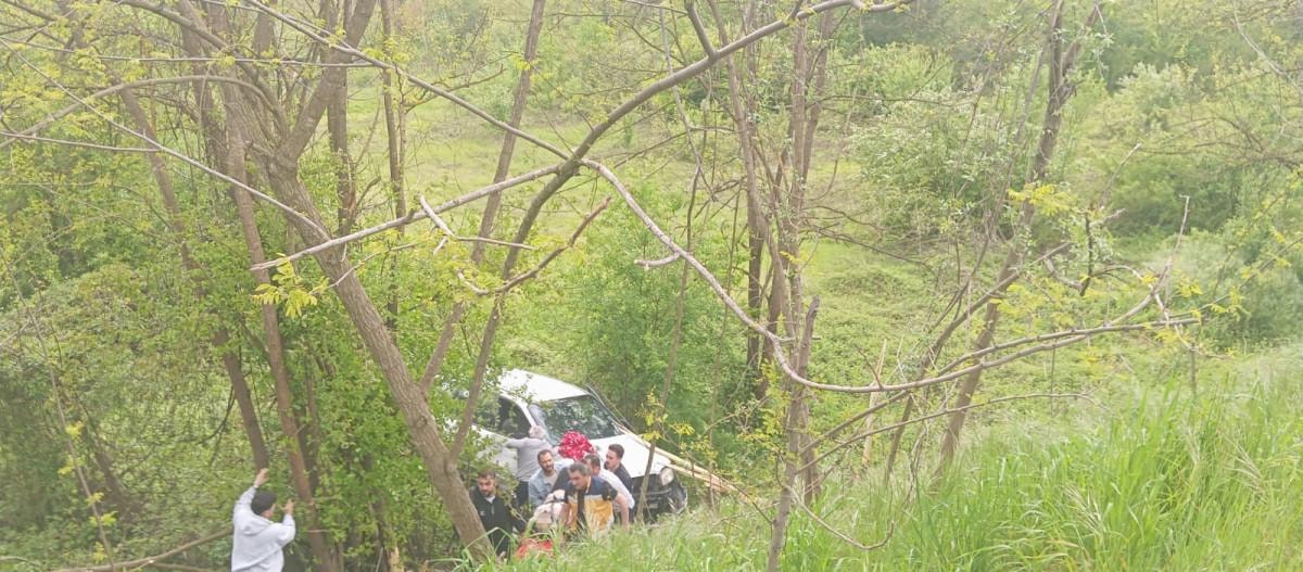 Plakası henüz öğrenilemeyen araçta bulunan sürücü Ç.Ö. (62) ile torunları D.D. ve S.D. hafif şekilde yaralandı.