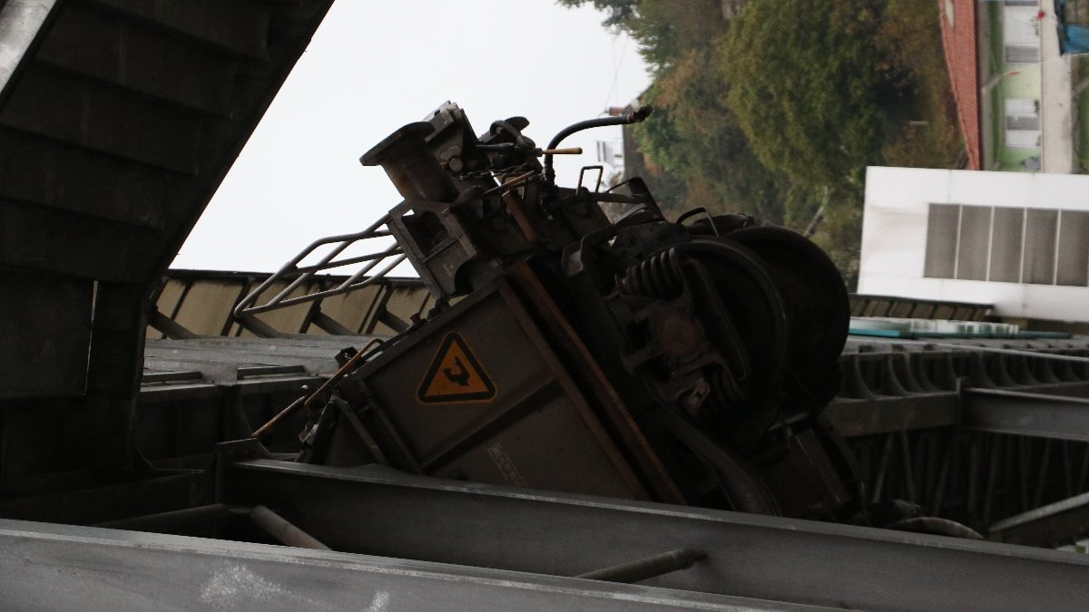 Zonguldak’ta, raydan çıkan vagon üst geçide saplandı VİDEO