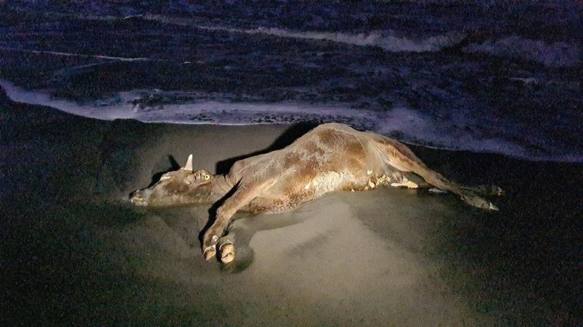 Zonguldak'ın Ereğli ilçesine bağlı Belediye Plajlar mevkiinde, kıyıya inek ölüsü vurdu.