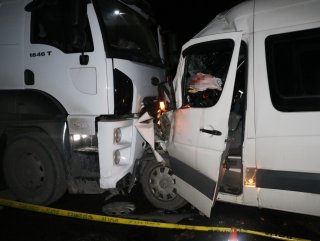 Zonguldak'ın Kilimli ilçesi arasındaki sahil yolunda, H.T. idaresindeki 67 AY 296 plakalı tır ile karşı yönden gelen Kenan Kurban idaresindeki 67 S 0162 plakalı okul servisi kafa kafaya çarpıştı.
